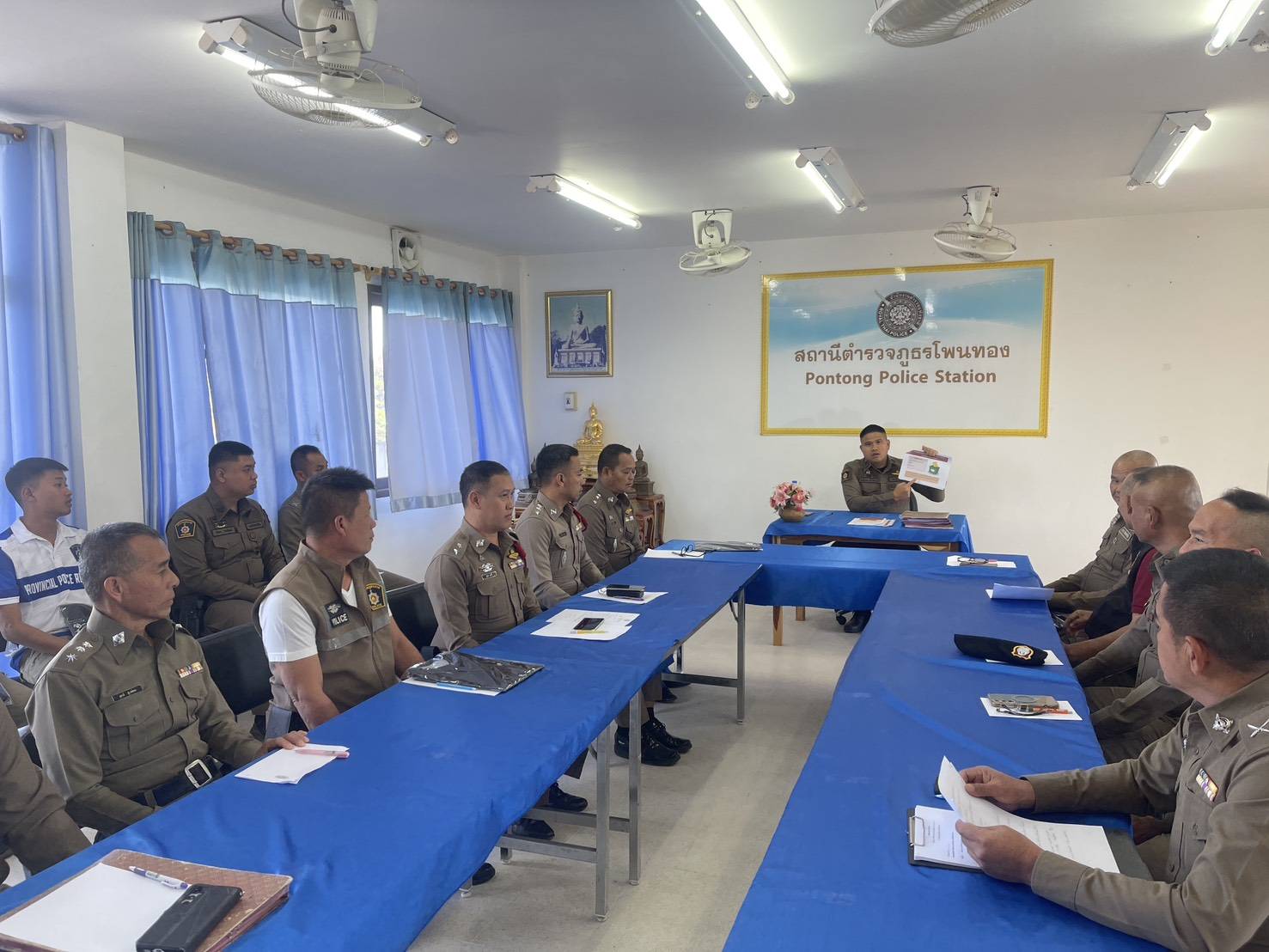 สถานีตำรวจภูธรโพนทอง ได้ทำโครงการฝึกทบทวนข้าราชการตำรวจ ท่าบุคคลมือเปล่า เป็นประจำ ทุกวันพุทธของเ