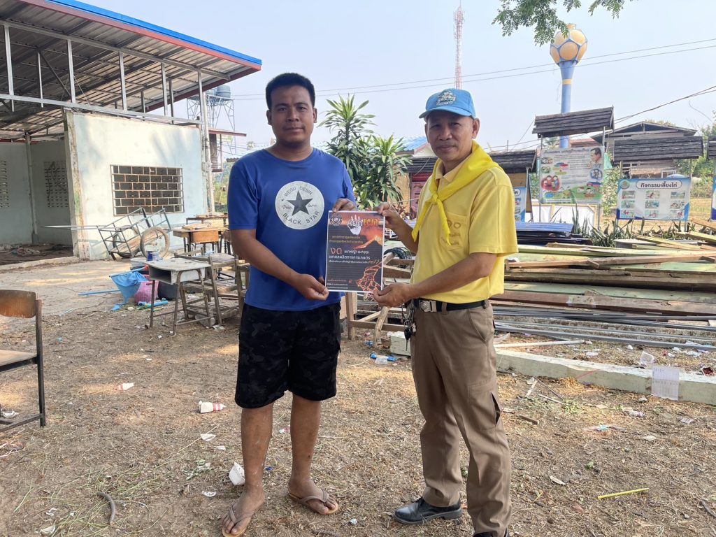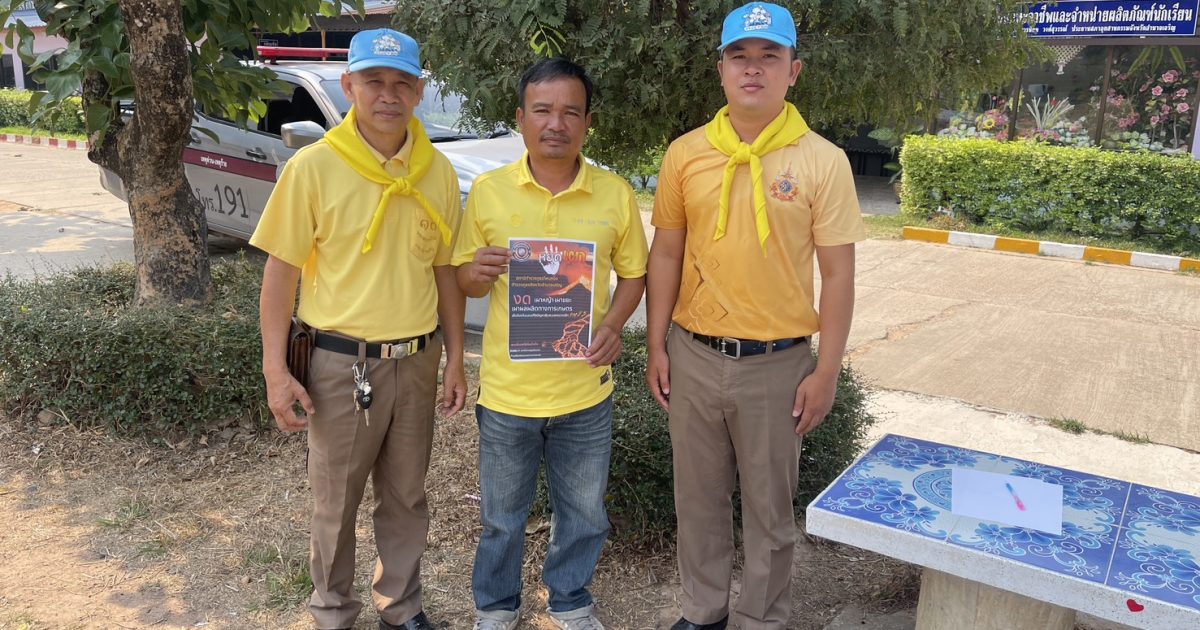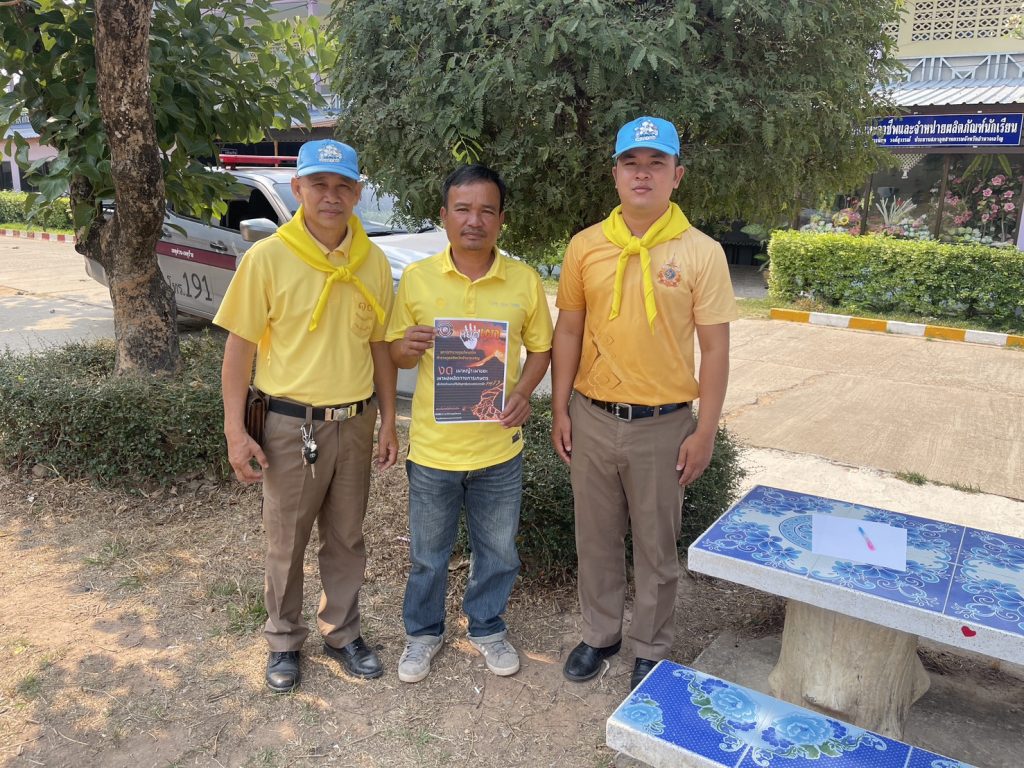สถานีตำรวจภูธรโพนทอง พ.ต.ท.เจน วิเศษรัมย์ สว.สภ.โพนทอง มอบหมายให้ข้าราชการตำรวจจิตอาสา สภ.โพนทอง ออกประชาสัมพันธ์การลดปัญหามลพิษ PM 2.5 การป้องกันอาชญากรรมทางเทคโนโลยี กลโกงมิจฉาชีพ และยาเสพติด