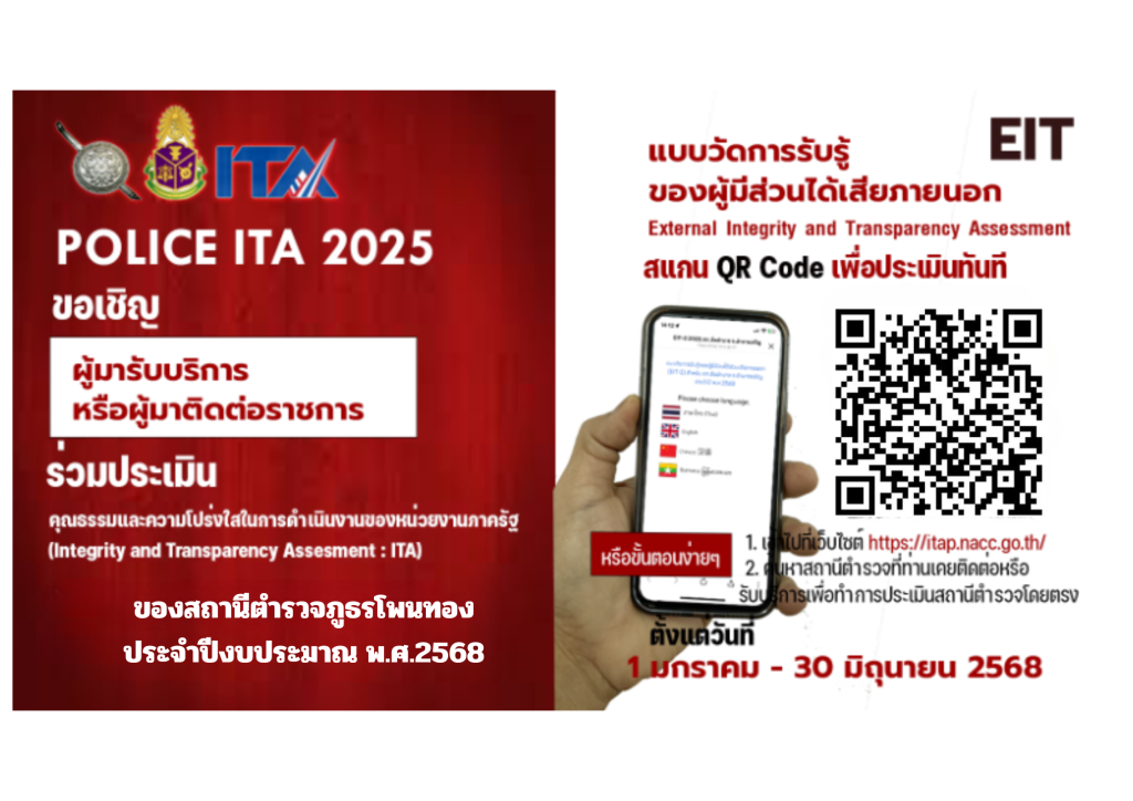 ติดตั้งแผ่นประชาสัมพันธ์การตอบแบบวัดการรับรู้ผู้มีส่วนได้เสียภายนอก EIT ณ โต๊ะประชาสัมพันธ์ มองเห็นได้โดยง่าย และควบคุมโดยเจ้าหน้าที่ประชาสัมพันธ์